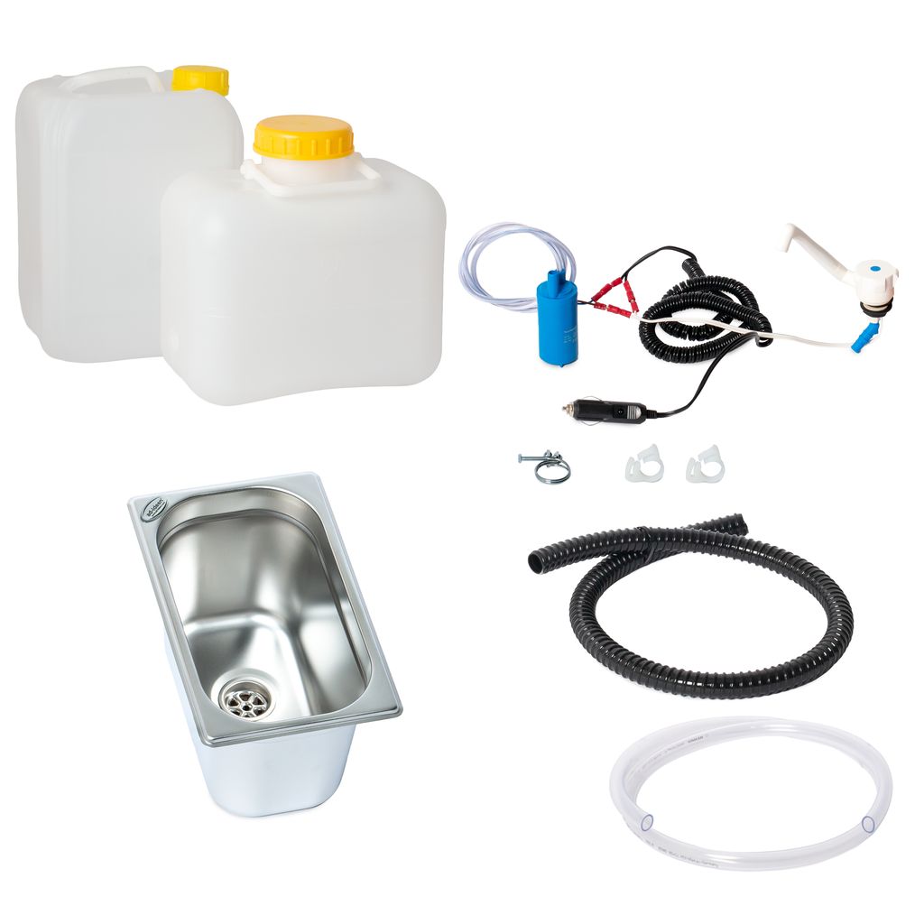 Beschreibung: Du baust gerade deinen Bus zum Camper um? Brauchst du an deinem Markstand fließendes Wasser? Dann bist du bei uns genau richtig. Wir haben das passende Set für dich. Die Verkabelung bekommst du bei uns schon vormontiert, das erleichtert dir die Montage. Du hast hier alles, was du benötigst, um fließendes Wasser zu bekommen.